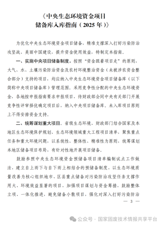 近日,生態(tài)環(huán)境部與財(cái)政部聯(lián)合修訂發(fā)布了《中央生態(tài)環(huán)境資金項(xiàng)目?jī)?chǔ)備庫(kù)入庫(kù)指南(2025年)》。該指南是在2021年版本的基礎(chǔ)上修訂而成,進(jìn)一步拓展了資金支持范圍,并對(duì)部分支持方向進(jìn)行了優(yōu)化調(diào)整,為更多生態(tài)環(huán)境項(xiàng)目提供了精準(zhǔn)的資金保障。
